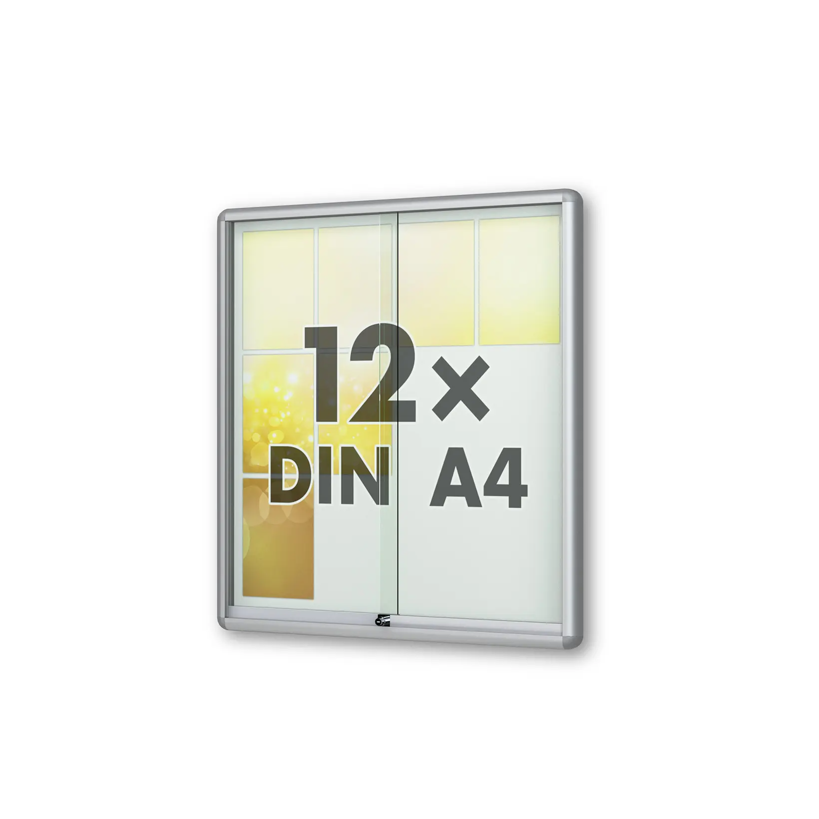 Vitrinen.de ➤ "12 x DIN A4 Schaukasten Moveo - "die Schulvitrine" - 50 mm Bautiefe - mit Brandschutzklasse A1 - Rollengelagerte Schiebetüren✓ abschließbar✓ ESG-Sicherheitsglas✓"